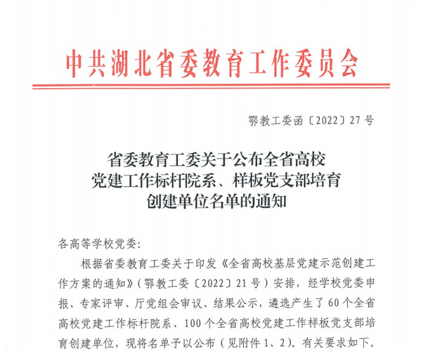 本网讯 近日,省委教育工委下发通知,公布全省高校党建工作标杆院系、样板党支部培育创建单位名单,米乐官方网页版_米乐(中国)理工学部学生党支部光荣入选。