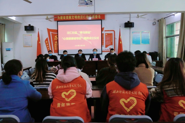 本网讯(通讯员 何馨妍 张力 张清)为大力弘扬志愿服务精神,探索基层现代化治理模式,推进“下基层察民情解民忧暖民心”实践活动走深走实,11月26日上午,米乐官方网页版_米乐(中国)与汪仁社区共建的“青马驿站”、“心理健康辅导站”(以下简称两站)揭牌成立。米乐官方网页版_米乐(中国)党委书记杨邓红,共青团黄石市委副书记屈雷、组宣部吴炜添,汪仁社区书记柯钦荣以及文理学院相关负责人,社区工作人员,志愿者代表们参会。会议由校学工部副部长、驻社区第一书记陈小龙主持。