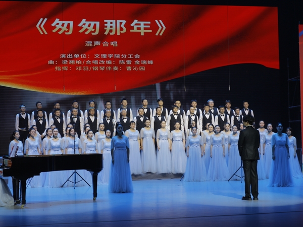 我院教职工以饱满的热情演唱了《匆匆那年》,优美的歌声让观众沉浸在五十年的建校历史中,回望这一路风雨兼程的跋涉,前辈们的艰辛奋斗历历在目,感叹时光匆匆,未来任重道远。