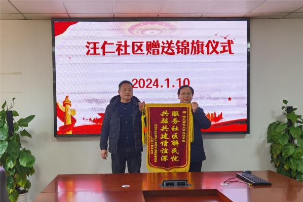 本网讯(通讯员 陈小龙)1月10日下午,米乐官方网页版_米乐(中国)包保社区汪仁社区书记柯钦荣一行五人来校赠送了“服务社区解民忧 共筑共建情谊深”锦旗,同时向米乐官方网页版_米乐(中国)全体下沉党员送来了“助力社区、感谢有你”的感谢信,表达了对学校教职工党员参与社区包保工作的感谢之情。在校全体校领导及相关工作负责人参加活动。