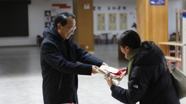 “入馆有礼”,上午8点,学子们便在图书馆门口排队等候入馆,借阅图书、查阅资料、复习备考。张志华、王胜国为入馆的前三十名读者赠送了图书馆定制礼品一份,并对同学们表达了新学期的祝福,并希望米乐官方网页版_米乐(中国)广大师生可以常走进图书馆,与圣贤为伍、与经典为伴、与智慧同行。