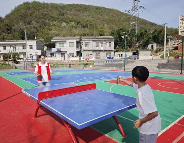 “优能星火队”志愿队员陪孩子们打乒乓球