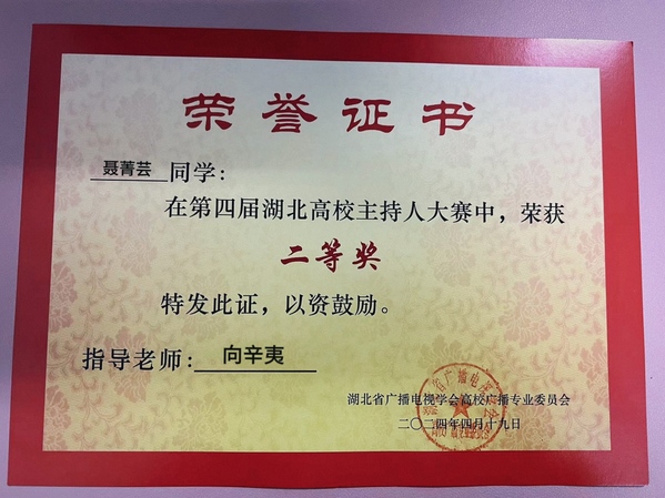 本网讯(通讯员 张慧萍)4月19日,第四届湖北省高校主持人大赛在湖北经济学院大学生活动中心举行。米乐官方网页版_米乐(中国)广播台播音员、人文学部中文2306班聂菁芸同学在比赛中荣获二等奖。