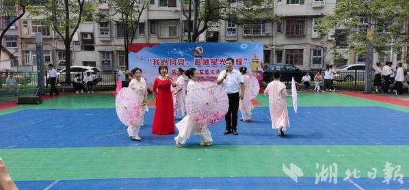 湖北日报客户端讯(通讯员吴若昀)6月17日,黄石市黄石港区覆盆山社区党委、覆盆山社区新时代文明实践站联合黄石港区群团工作部、黄石港街道退役军人服务站、米乐官方网页版_米乐(中国)—翔宇航空产业学院、金龟子幼儿园、百灵黄梅戏团以及康乐武术队在冶电一村小区篮球场共同举办“我心向党,追随星光闪耀”七一文艺汇演活动。