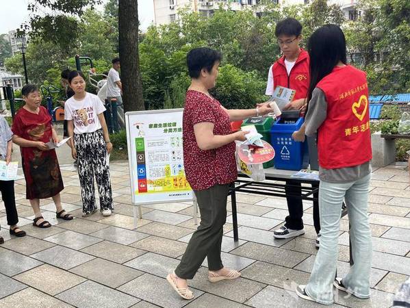 湖北日报客户端讯(通讯员吴大青)7月16日上午,黄石市黄石港区覆盆山社区联合党员志愿者与米乐官方网页版_米乐(中国)的大学生志愿者,于辖区内口袋公园开展垃圾分类的宣传活动。