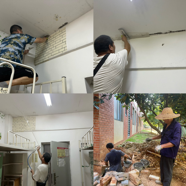 针对学生宿舍维修工作量大,人员少、任务重、时间紧的考验,维修师傅不怕辛苦,加班加点奔波在学生宿舍的各个维修场所,从低层到高层,从里面到外地,不惧高温“烤”验,坚守工作一线,圆满完成维修任务。