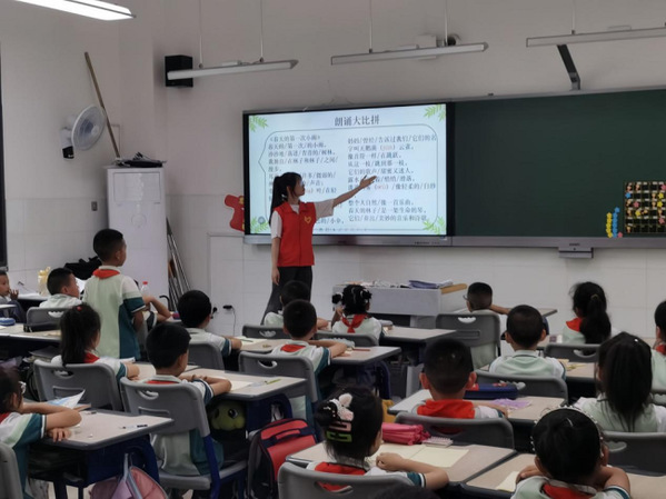堆子场小学和幼儿园由于地处贫困山村地区,普通话普及率较低,因此志愿者更加注重普通话的推广和普及。在课堂上,他们以引导和互动为主,借动画和益智类游戏来加深小朋友们对讲好普通话的认识和理解。