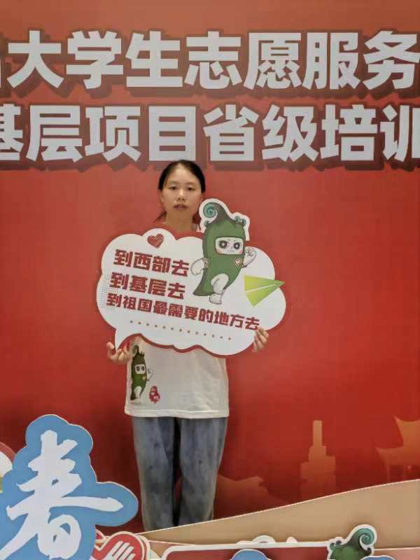 “到西部去,到基层去,到祖国和人民最需要的地方去。”作为一名大学生,对西部计划的意蕴自然有着自己深刻的想法。在谈及西部计划的最大意义时,刘国娟表示,最大的意义在于能够深入基层,去深入了解基层部门的工作和人民的日常生活,从而进一步了解自己的国家。对于她自身而言,西部计划的经历会让她的人生阅历更加丰富,在磨砺她的意志的同时,也使其更加坚定最初的目标与选择。对于即将到贵州开展的志愿服务生活,她将以行动践行全心全意为人民服务的初心,办实事,脚踏实地做好有关人民利益的每一件事。谈及未来,刘国娟满是期待,她说到,“未来我希望自己能在志愿服务这条路上继续坚持走下去,一直到自己干不动为止,只要我有时间、有精力、有能力,就会一直走下去!”