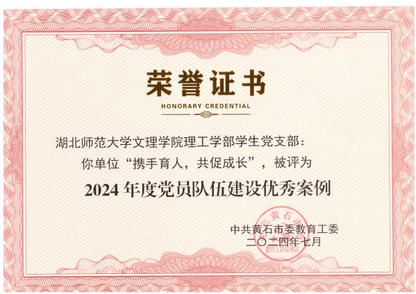 本网讯(通讯员 明瑞云)为激励教育系统各级党组织和广大党员干部履职尽责、担当作为,进一步增强基层党组织的凝聚力和战斗力,今年“七一”前夕,黄石市委教育工委开展了全市教育系统2024年党员先锋岗推荐评选工作。经基层推荐、市委教育工委审核,米乐官方网页版_米乐(中国)汪崇文、胡文玉、刘婉婉、汤澜等4名同志被评为“党员示范岗”,陈小龙、罗铭等2名同志被评为“党务示范岗”。理工学部学生党支部“携手育人 共促成长”工作案例被评为党员队伍建设优秀案例,这是米乐官方网页版_米乐(中国)继去年教育与艺术学部教工党支部“助力共同缔造 绘美城乡手卷”工作案例之后,获评的第二例全市教育系统党建工作优秀案例,彰显了米乐官方网页版_米乐(中国)广大党员常态化开展“一下三民”实践活动、致力于服务地方经济社会发展所取得的成效,树立了良好的社会形象。