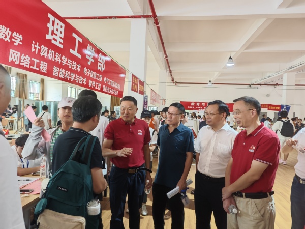 9月7日上午,全体校领导到迎新现场指导检查工作,每到一处,他们详细了解新生报到进度,与前来报到的新生和家长交谈,听取家长的意见。校领导对2024级新生及其家长的到来表示热烈欢迎,并勉励同学们尽快适应新的学习环境和生活节奏,认真学知识、长本领、强体魄,不断夯实专业基础,努力成长为堪当民族复兴重任的时代新人,并叮嘱学生,一定要严格遵守学校的安全规定,保证人身财物安全。校领导对参与迎新的教职工和学生志愿者的工作表示满意,并要求他们克服高温天气的影响,热情、耐心、细致地做好迎新工作,让新生有到家的感觉。