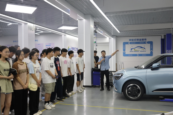 “当我踏入这里的那一刻,仿佛进入了一个充满科技感与未来气息的新世界。”“这次开放日活动,我近距离观察到了新能源汽车的电池、电机和电控系统。这些原本只在书本上见过的复杂结构,如今真实地展现在面前,让我对新能源汽车的核心技术有了更直观的认识。”现场同学激动地说。