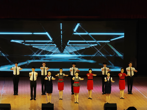 2023级学生带来民航风采展示开场表演,为讲座拉开序幕。