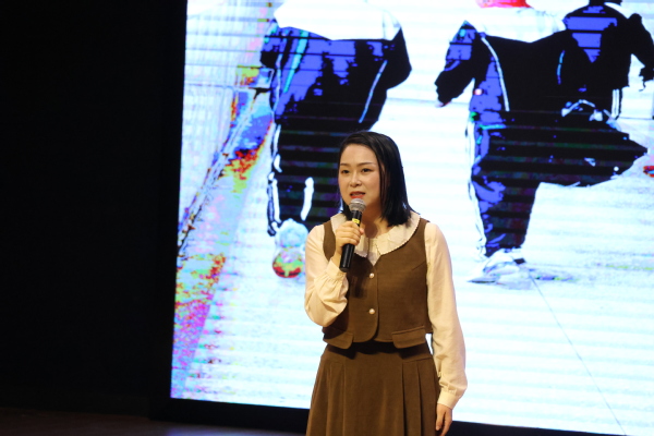 杜咏梅讲述了题为《牵手》的教师与自闭症儿童的故事。教师,不仅仅是知识的传授者,更是心灵的守护者。他们用耐心、爱心和恒心,为这些孩子点亮希望之灯,引领他们走出孤独的世界,融入这个多彩的社会。宣讲结尾处,杜老师唱起了《万疆》:“吾国万疆 以仁爱 千年不灭的信仰......”现场观众应节合拍,气氛达到了高潮。