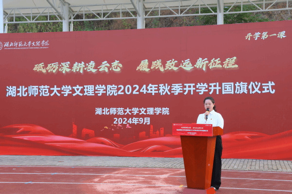 学生代表张燕以《凝心铸魂强根基,笃学善思启新程》为题进行国旗下讲话。她表示,作为新时代青年要能吃苦、肯奋斗,在社会主义现代化国家建设新征程中乘风破浪、奋勇前进,让青春绽放绚丽之花。
