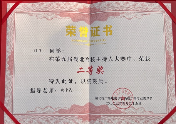 本网讯(通讯员 李乐)4月25日,第五届湖北省高校主持人大赛在湖北经济学院大学生活动中心举行。米乐官方网页版_米乐(中国)广播台播音员、人文学部中文2405班学生陈末在比赛中荣获二等奖。
