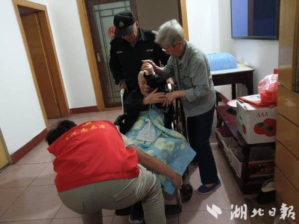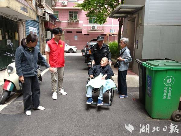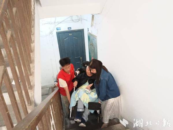 湖北日报客户端讯(通讯员徐岚)5月10日上午,亚光社区亚光新村小区24栋发生了感人一幕。社区网格员夏慧萍携手大学生志愿者刘俊杰、物业保安将居民项爹爹,和他的轮椅一起搬运下楼,送其就医,项爹爹和他的老伴向社区和志愿者们表示了真挚的感谢。