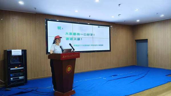 随后,由黄石市开发区铁山区禁毒大队宣传民警雷兴汉采用PPT讲解的方式,开展“珍爱生命,远离毒品”的主题宣讲。针对同学们好奇心强、辨别能力弱、易受引诱等特点,巧妙融合真实案例、生动图片,并结合通俗易懂的语言,深入浅出地介绍了毒品的概念、种类、危害及有效预防方法。特别是针对“电子烟”、“依托咪酯”等麻精药品进行了重点讲解,提醒同学们警惕麻精药品等成瘾性物质,保护自身健康安全。同时,由黄石市现代口腔医院专家赵险蓉老师,讲授口腔护理与口腔健康科普,提醒广大同学们注意口腔健康,防止毒从口入。