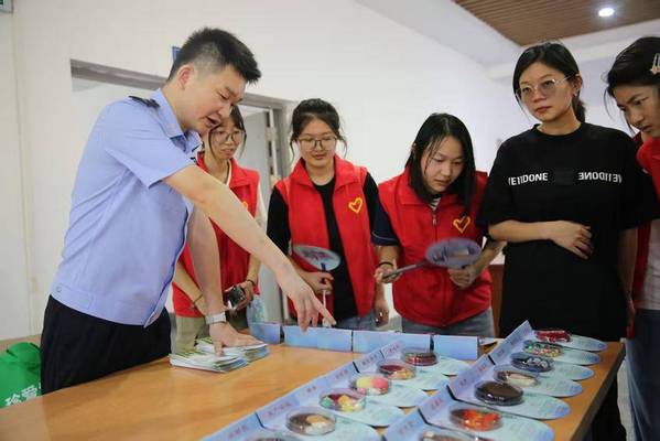 此外,禁毒委员会其他工作人员还通过展示毒品仿真模型,讲解了常见毒品、新型毒品和合成毒品的种类、特征,以及毒品对个人、家庭、社会的危害。加深同学们对毒品知识的了解。保障同学们“零距离”学习禁毒知识、“零门槛”参与禁毒宣传。