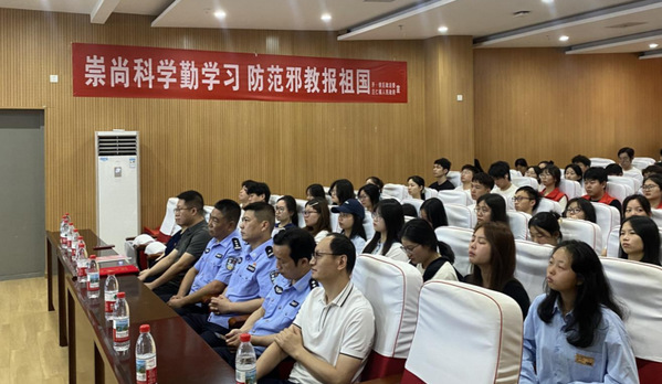 活动中,区公安分局工作人员针对反邪教知识开展宣讲,通过案例和数据剖析等方式,以案释法,让师生们清楚认识邪教对普通群众带来的危险和造成的伤害。同时在校园内,还设置了“反邪教警示教育”宣传区,制作相关展板10块、发放宣传手册300余册、反邪教宣传礼品200余份、覆盖师生约300人。