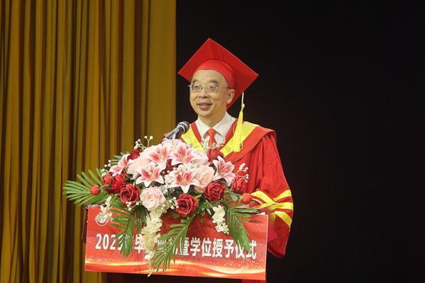 校长李开灿在讲话中代表学校向学有所成、即将启航的毕业生同学表示热烈祝贺,向辛勤付出的老师和父母致以衷心感谢。他表示,学校在过去几年荣获众多称号,办学实力与社会认可度提升,教育教学条件优化,同学们在学业和竞赛上也屡创佳绩。离别之际,他对学子们提出了三点叮嘱:一是以“变”为帆,把握时代机遇,树立终身学习理念,增强识变应变能力;二是以“恒”为舵,坚守永恒价值与道德规范,克服惰性,保持清醒头脑,把稳人生航向;三是以“勇”为桨,将“变”与“不变”的智慧付诸行动,以勇气和毅力解决实际问题,用智慧和担当书写辉煌人生篇章。同时,他也祝愿同学们带着母校的祝福与“诚毅勤敏”的校训精神勇敢起航,乘风破浪赴璀璨新征程。