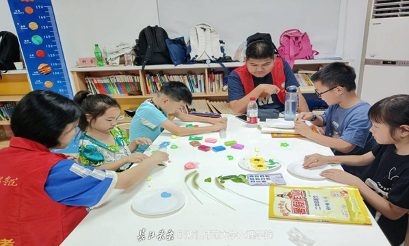 2025年7月,湖北师范大学文理学院人文学部紫薇支教团走进南岳社区“爱心托管班”,大手拉小手,为社区儿童打造了一个充实而有意义的暑期课堂。