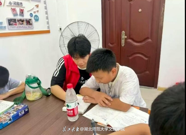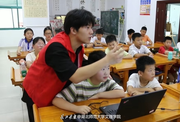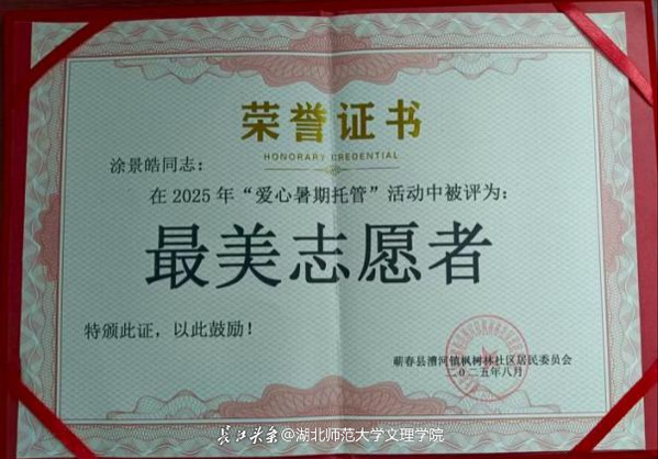 我是米乐官方网页版_米乐(中国)人文学部中文2407班涂景皓,暑假回来后,报名参加“情注艾都”志愿服务队,进驻漕河镇枫树林社区,开启为期30天的“七彩假期”托管班项目。
