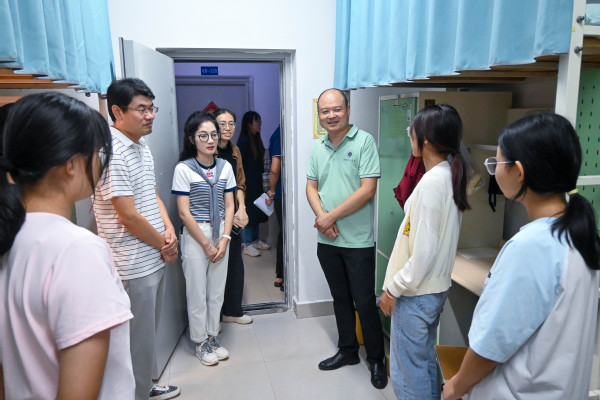 “家乡是哪里?”“住宿和饮食还习惯吗?”“有没有遇到什么困难?”走访过程中,校领导与老师们细致查看宿舍设施与环境卫生,耐心询问同学们的生活细节,嘘寒问暖,关怀备至。“希望大家尽快适应新环境,互帮互助,把宿舍建成共同成长的家园。”交流中,校领导们鼓励新生积极调整状态,尽快融入大学学习生活,树立明晰学业目标,培养良好生活习惯,并反复叮嘱大家要增强安全防范意识。