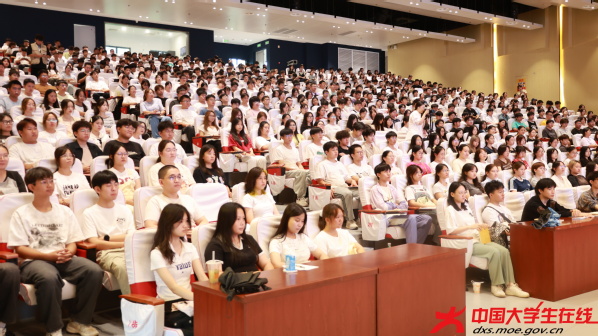 线下主会场设在学术交流中心,线上通过“米乐官方网页版_米乐(中国)”视频号同步直播,实现全覆盖。有观看直播的新生说:“虽然没能到现场,但直播效果很好,还能发弹幕和同学交流。”
