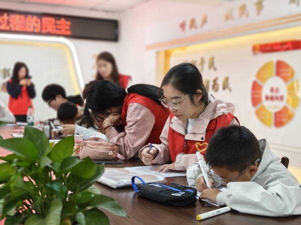 在课业辅导环节,志愿者们以耐心和微笑陪伴孩子们完成学习任务。温馨的场景深深感染了接送孩子的家长。一位家长欣慰地说:“活动真有意义,孩子们开心,我们也感受到了温暖。”