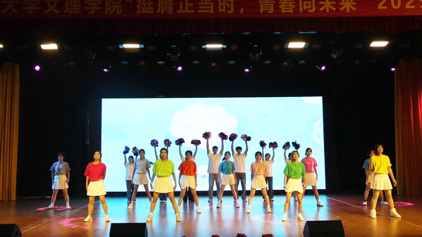 晚会节目形式多样,精彩纷呈。既有开场舞《奔跑的青春》瞬间点燃全场的活力,也有群舞《映山红》用优美舞姿演绎的红色深情;既有相声《返校》以妙语连珠带来的满堂欢笑,也有情景朗诵《怒放的青春》用慷慨激昂抒发的青年壮志。乐队一曲《海阔天空》唱响追梦的摇滚力量,走秀《溯光》则步态生辉,尽显礼仪风范。从深情款款的《落叶归根》《友情岁月》,到活力四射的舞蹈串烧,再到最终引爆全场的歌伴舞《我和我的祖国》,整场晚会高潮迭起,掌声不断。