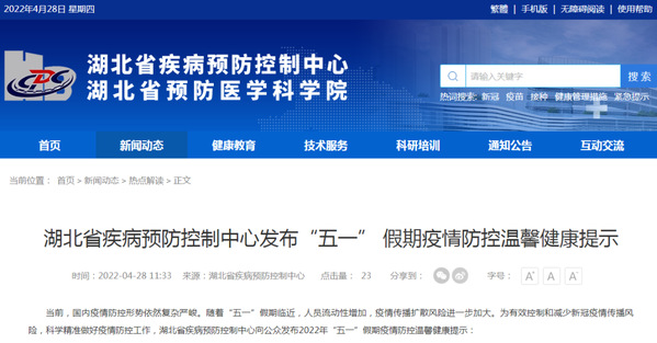 湖北省疾病预防控制中心发布“五一”假期疫情防控温馨提示