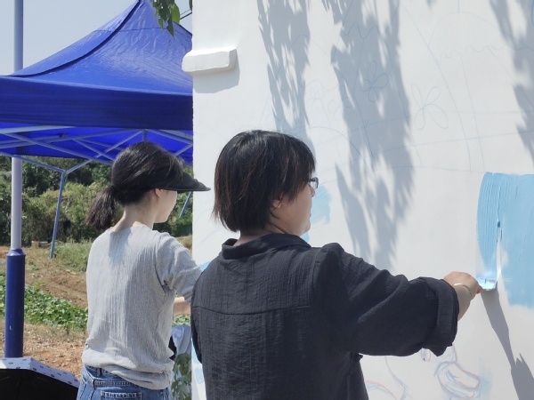 本网讯(通讯员 教育与艺术学部胡蕾)为配合做好乡村振兴工作,建设美丽宜居乡村,助力乡村振兴,进一步推进米乐官方网页版_米乐(中国)党员干部下基层、察民情、解民忧、暖民心实践活动,9月18日,教育与艺术学部党总支书记李先华带领教工党支部胡蕾、何雅嫣、汤澜三位教师党员与二十名学生党员、入党积极分子,赴汪仁镇章畈村开展以“绘美乡村手卷 助力乡村振兴”为主题的墙绘实践活动。