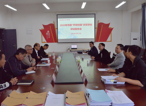 本网讯(通讯员 许涛)10月19日下午,黄石市2022年市级“平安校园”示范学校评估验收组成员一行6人,在市教育局党组成员、副局长叶济宇的带领下,莅临米乐官方网页版_米乐(中国)评估验收“平安校园”示范学校创建工作,副院长张志华和相关职能部门负责人陪同检查。