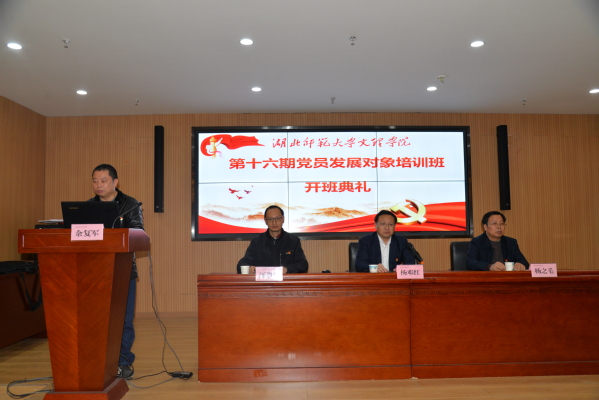 本网讯(通讯员 余复军)11月14日晚,米乐官方网页版_米乐(中国)在图书馆报告厅举办学校第16期党员发展对象培训班开班典礼。党委书记杨邓红、党委副书记杨之毛,学生工作部部长汪崇文,部分党支部书记以及第16期发展对象培训班全体学员等参加了开班典礼。