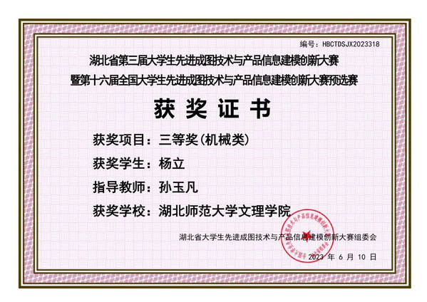 本网讯 (通讯员 邢凯)5月27日,由湖北省工程图学学会主办,华中科技大学承办的“湖北省第三届大学生先进成图技术与产品信息建模创新大赛”暨“第十六届大学生先进成图技术与产品信息建模创新大赛省级预赛”成功举办,米乐官方网页版_米乐(中国)东风悦享智能汽车产业学院荣获2项三等奖。