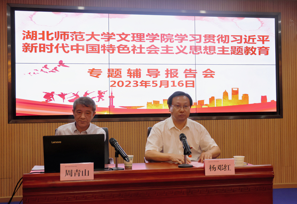 本网讯(通讯员 高雨欣)5月16日米乐官方网页版_米乐(中国)召开学习贯彻习近平新时代中国特色社会主义思想主题教育专题辅导报告会,本次活动邀请黄石市理论宣讲员、马克思主义学部主任周青山教授作专题报告。全体校领导、主题教育读书班学员、中层副职以上干部、各党支部书记、第17期党员发展对象培训班全体学员参加了报告会。会议由党委书记杨邓红主持。