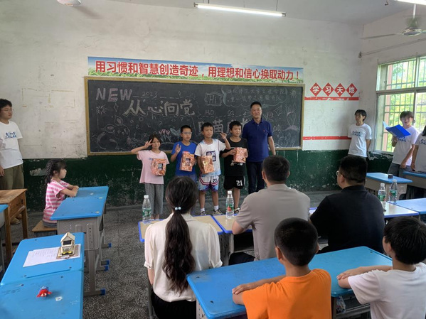 本网讯(通讯员 赵卫军)7月6日至20日,由学校团委组织的“童心筑梦志”大学生愿服务队来到黄石市阳新县木港镇木港小学,开展以“从心向党,助苗成长——助力留守儿童乡村教育项目”为主题的社会实践活动。此次活动为期15天,关注的重点群体为留守儿童,志愿者们以实际行动播撒爱心,让留守儿童不再孤单。