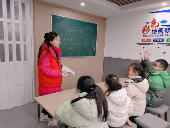 辅导课业上,志愿者以思维启迪思维,重在开阔孩子们的视野;手工课上,志愿者们将美育融入教育教学活动各环节,陪伴孩子们进行剪纸绘画,还在春节到来之际带领孩子们制作中国结,实现美育激发每个孩子创新创造活力,温润心灵的功能。