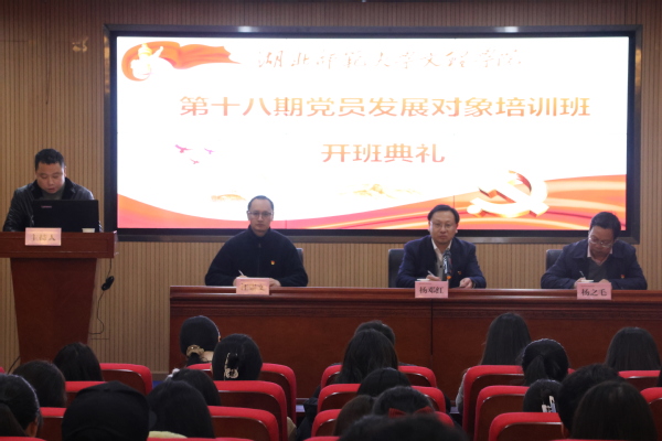 本网讯(文 刘健美 梅欣琳 图 黄依娜 周婉欣)11月13日晚,米乐官方网页版_米乐(中国)在图书馆报告厅举办第18期党员发展对象培训班开班典礼。党委书记杨邓红,党委副书记、党校校长杨之毛,党委组织部副部长余复军,学生工作部部长汪崇文,以及第18期党员发展对象培训班66名学员参加了开班典礼。开班典礼由余复军主持。