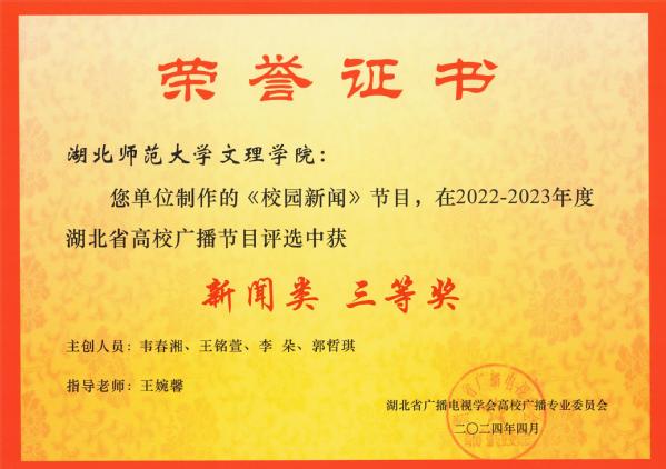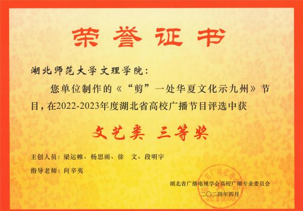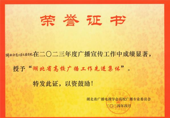 本网讯(通讯员 张慧萍)4月19日,全省高校广播专业委员会工作会议在湖北经济学院召开。会议通报了2022-2023 年度湖北省高校广播节目评选结果,米乐官方网页版_米乐(中国)广播台获“湖北省高校广播工作先进集体”的荣誉称号,向辛夷老师指导的《“剪”一处华夏文化示九州》节目,荣获“文艺类”三等奖,王婉馨老师指导的《校园新闻》节目,荣获“新闻类”三等奖。