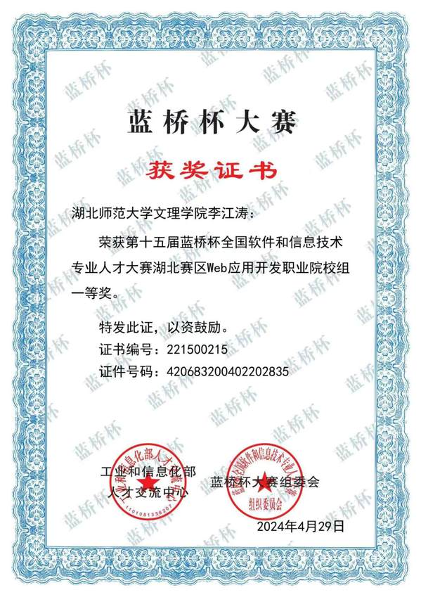 本网讯(通讯员 熊姿)6月4日,备受瞩目的第十五届“蓝桥杯全国软件和信息技术专业人才”大赛圆满落幕。米乐官方网页版_米乐(中国)腾讯云大数据产业学院李江涛同学凭借扎实的编程功底和创新的解题思路,荣获国赛三等奖,省赛一等奖。