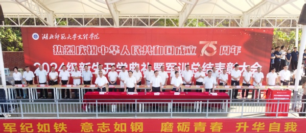 常务副校长杨学斌向承训单位授锦旗,党委书记杨邓红宣读了2024级新生军训表彰文件,校领导为本次军训过程中产生的优秀个人、团体及优秀辅导员颁奖。