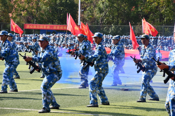 随后,擒敌拳、女子舞蹈、旗语、匕首术、军棍表演、战术动作对抗等方阵依次表演,一场场充满力量与美感的表演让现场掌声与喝彩声不断,展示着文理学子的青春风采和军事技能。