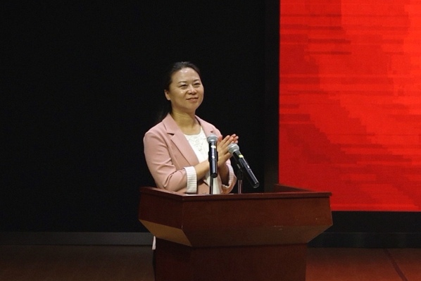 杜咏梅讲述了题为《牵手》的教师与自闭症儿童的故事。教师,不仅仅是知识的传授者,更是心灵的守护者。他们用耐心、爱心和恒心,为这些孩子点亮希望之灯,引领他们走出孤独的世界,融入这个多彩的社会。宣讲结尾处,杜老师唱起了《万疆》:“吾国万疆 以仁爱 千年不灭的信仰......”现场观众应节合拍,气氛达到了高潮。