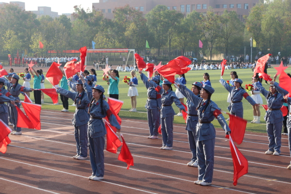 踏着青春的步伐,伴着激昂的旋律,入场仪式正式开始。国旗方阵、校旗方阵、花束方阵、彩旗方阵和各学部(学院)方阵依次走过主席台。他们朝气蓬勃、意气风发,充满着青春的激情;他们的口号热情洋溢、铿锵有力,洋溢着青春的自信。在展示环节,他们以自己的才艺,显示着绚丽的文化和多彩的生活。随后,进行了升国旗仪式。