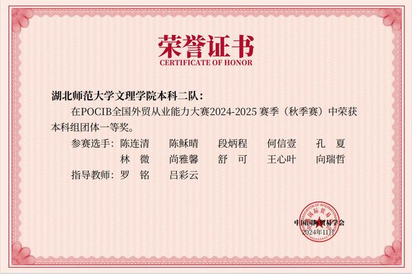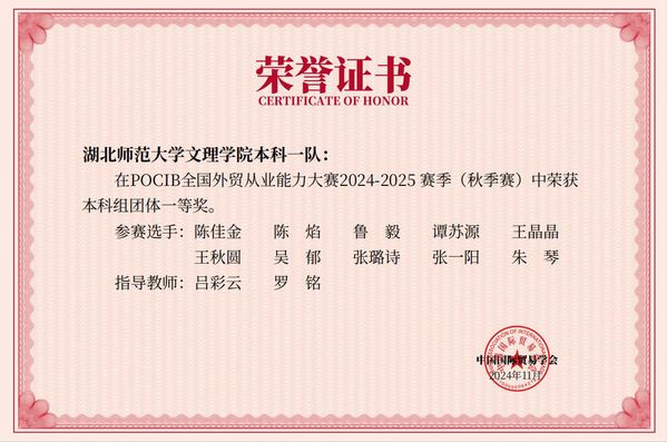 本网讯(通讯员 吕彩云)11月19日,由中国国际贸易学会主办的第十四届POCIB全国大学生外贸从业能力大赛国赛在经历了13天比赛后正式落下帷幕。米乐官方网页版_米乐(中国)经济与管理学部学子斩获全国团体一等奖2项,个人二等奖5项,个人三等奖15项。