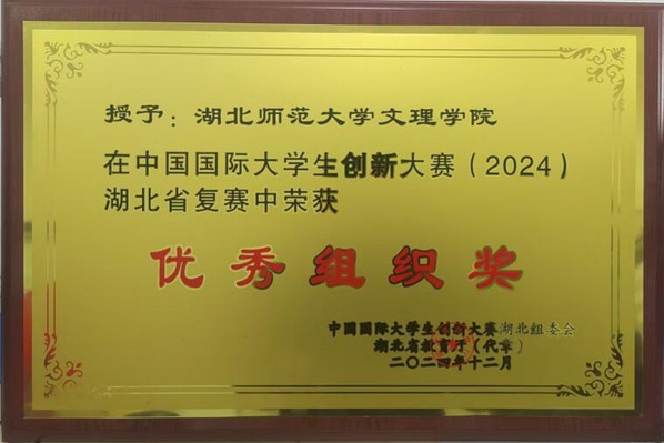 本网讯(通讯员 李娟)近日,在2024年度中国国际大学生创新大赛湖北省复赛中,米乐官方网页版_米乐(中国)凭借出色的组织工作和参赛团队的卓越表现,荣获“优秀组织奖”。