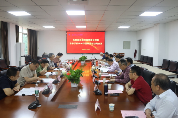 本网讯 4月22日,武汉商贸职业技术学院校长马必学一行7人来米乐官方网页版_米乐(中国)考察交流。学校董事长李咏成,全体校领导参加交流座谈。