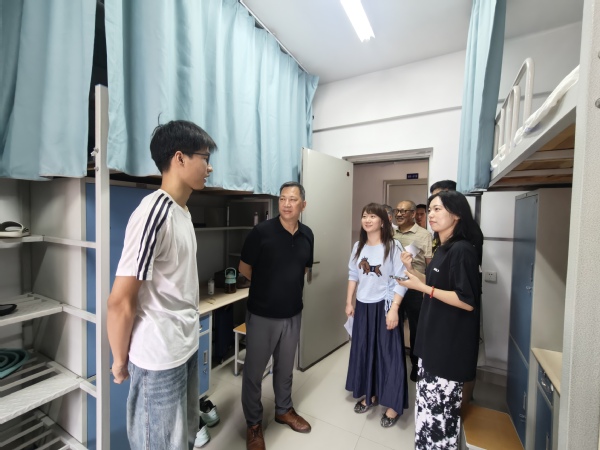 “家乡是哪里?”“住宿和饮食还习惯吗?”“有没有遇到什么困难?”走访过程中,校领导与老师们细致查看宿舍设施与环境卫生,耐心询问同学们的生活细节,嘘寒问暖,关怀备至。“希望大家尽快适应新环境,互帮互助,把宿舍建成共同成长的家园。”交流中,校领导们鼓励新生积极调整状态,尽快融入大学学习生活,树立明晰学业目标,培养良好生活习惯,并反复叮嘱大家要增强安全防范意识。