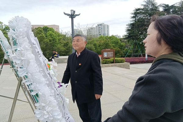 革命战争年代,阳新20万英雄儿女抛头颅、洒热血,谱写了一首首壮丽的英雄诗篇。清风寄哀思,松柏传敬意。经济与管理学部教工党支部全体同志面向革命烈士纪念碑整齐肃立,通过敬献花圈、默哀等仪式,向为保卫祖国献出热血的革命英烈表达崇高敬意和深切缅怀。
